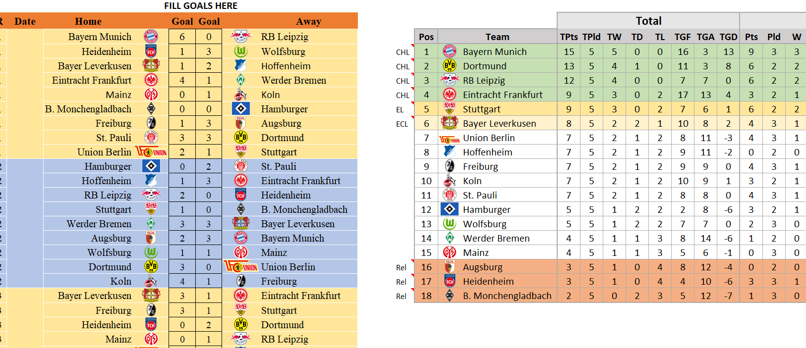 Following more than one league? Combine this Bundesliga spreadsheet with similar templates for:
