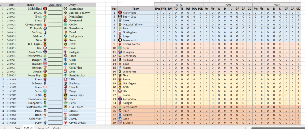 The UEFA Excel Europa League 2025/2026 season promises to be one of the most exciting yet, filled with top European clubs competing for continental glory. For fans, analysts, and football managers alike, keeping track of matches, dates, and results can become overwhelming. That is why having a reliable Excel Europa League 2025/2026 fixture template is essential.